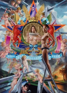 PETER DAVERINGTON’s spectacularly large painting, The Golden City Has Ceased, has been selected as a finalist for the Archibald Prize 2014. Renowned for being Australia’s favourite and most prestigious art award, the prize is awarded to the best portrait painting of Australian culture including, but not limited to, portraits of politicians, celebrities, sporting heroes and artists. Daverington describes the painting as ‘a self-portrait of my imagination, where my signature geometric and spatial elements appear among figurative compositions drawn from various painting traditions.’ The painting has been approached with spontaneity over 18 months, where Daverington has drawn inspiration from socialist propaganda posters, Renaissance art, Romantic landscape painting, medieval European heraldry and religious iconography. The winner will be announced on Friday 18 July and the exhibition will run between 19 July – 28 September 2014.