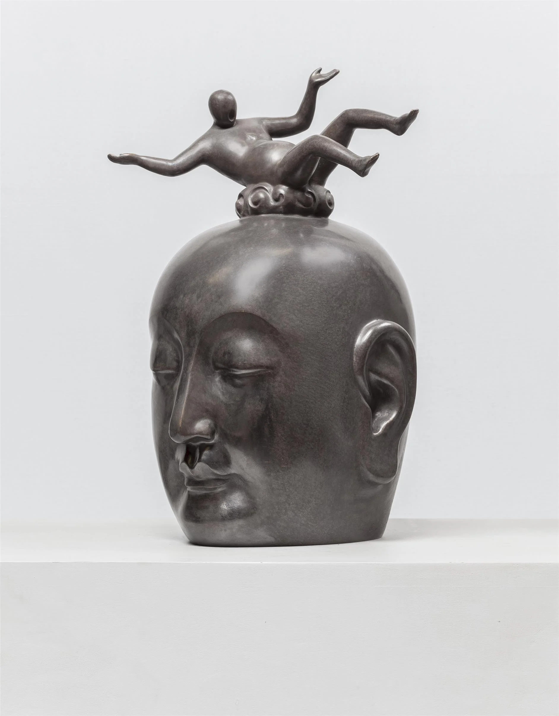 Guan Wei’s latest exhibition at ARC ONE Gallery presents two series of work: Body, a suite of expressive paintings laden with spiritual and philosophical meaning, and Salvation, sleek and playful bronze sculptures depicting little human figures tethered to the Buddha’s head.