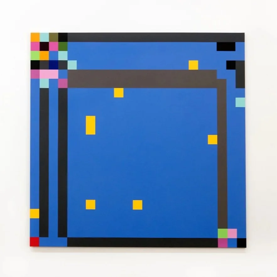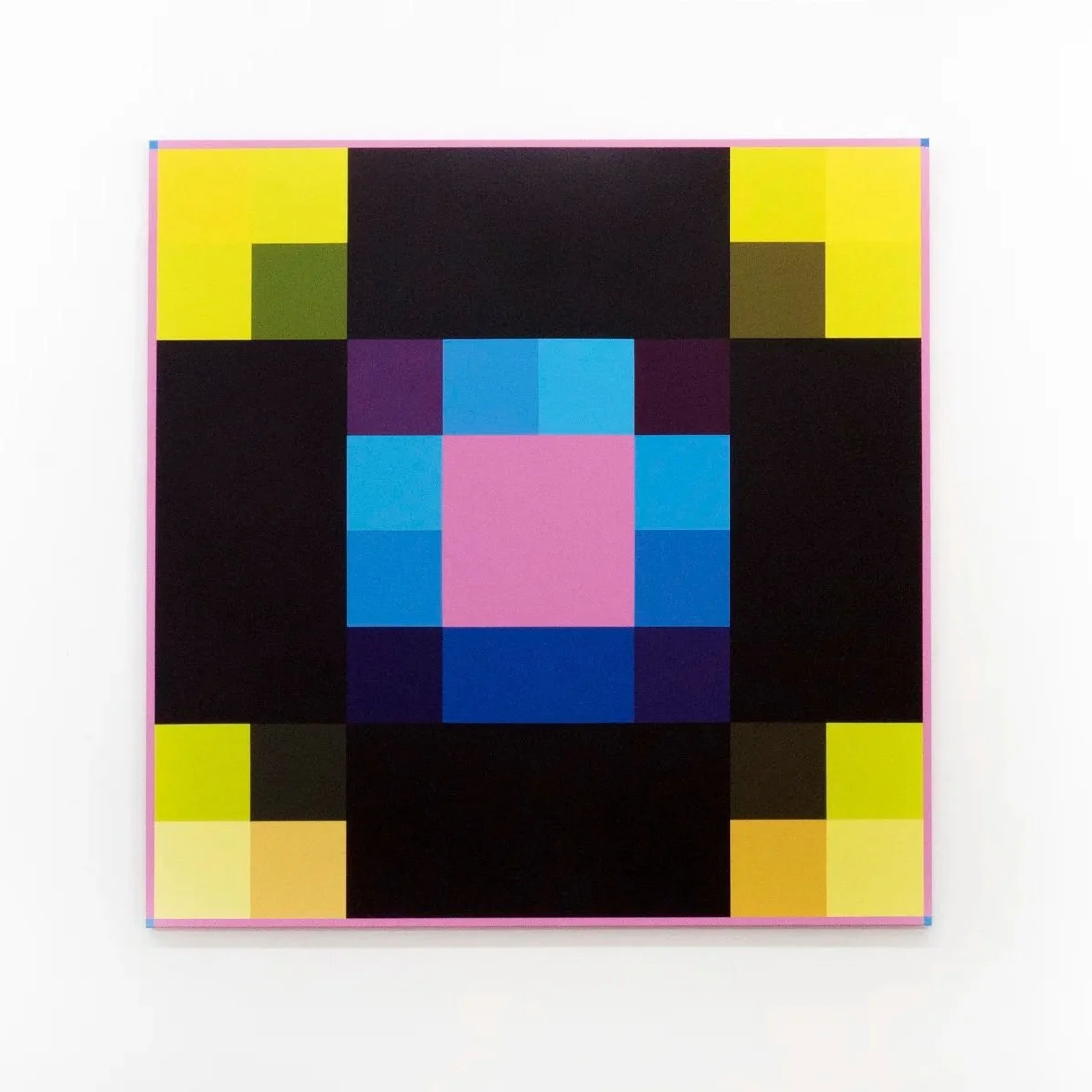 Wall: Acrylic, mica and tape on 81 canvas boards, 274 x 274cm
